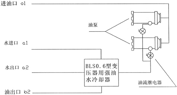 5、單臺冷卻器使用時(shí),一般使用雙油泵,一臺使用另一臺備用,如單臺設備不能滿(mǎn)足使用要求時(shí),可以采用多臺聯(lián)合使用,但組合必須符合下列規定: